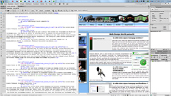 Für ganz bequeme haben wir auch den Namo Web-Editor, der wie Dreamweaver (rechts) auf dem WYSIWYG-Prinzip (What You See Is What You Get, z.D. Was Du Siehst Ist Was Du Bekommst) aufbaut. Aber auch dieser kann in der reinen HTML Ansicht arbeiten.