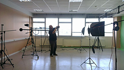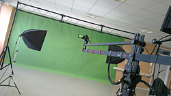 Ein fahrbarer Kamera-Kran lässt sanfte und reale Kamerafahrten zu und feste sowie mobile Beleuchtung rücken alles ins rechte Licht.
